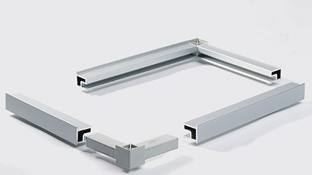 Durch unterschiedliche Profile lassen sich klein- und großformatige Bilder, Stell- und Trennwände oder freistehende Displays herstellen.